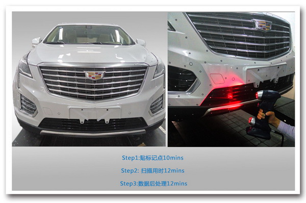以全局攝影測量系統獲得的標記點數據為整體基準,輻射到個別掃描區域,掃描汽車整車以及部分拆解后的零件,獲取其三維數據。